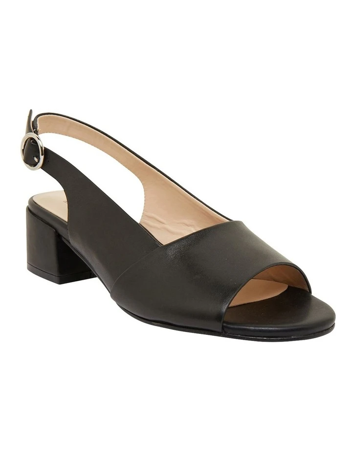 Add a touch of timeless elegance to workwear edits with MACY. They feature a leather upper to an rounded open toe profile and are fastened with a slender adjustable sling back strap then set on a comfortable low block heel. Wear them with monochrome separates or a patterned dress for a polished appearance.