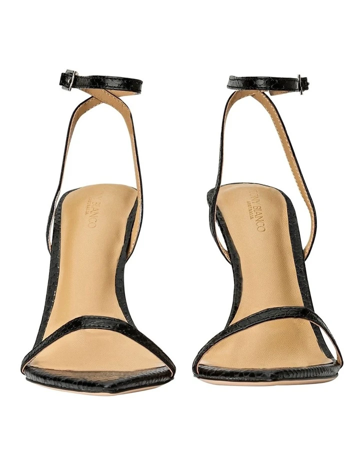 Make a statement in the striking Myra heels. Designed to turn-heads with a luxury metal stiletto heel, paired with a leather upper and ankle strap, they’re a bold twist on classic.