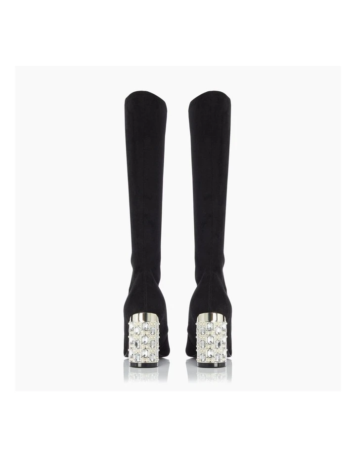 Add a touch of glam to your shoe collection with the Stargazing boots. Resting on a block heel with crystal embellishment. Shaped with a round toe for a classic finish.