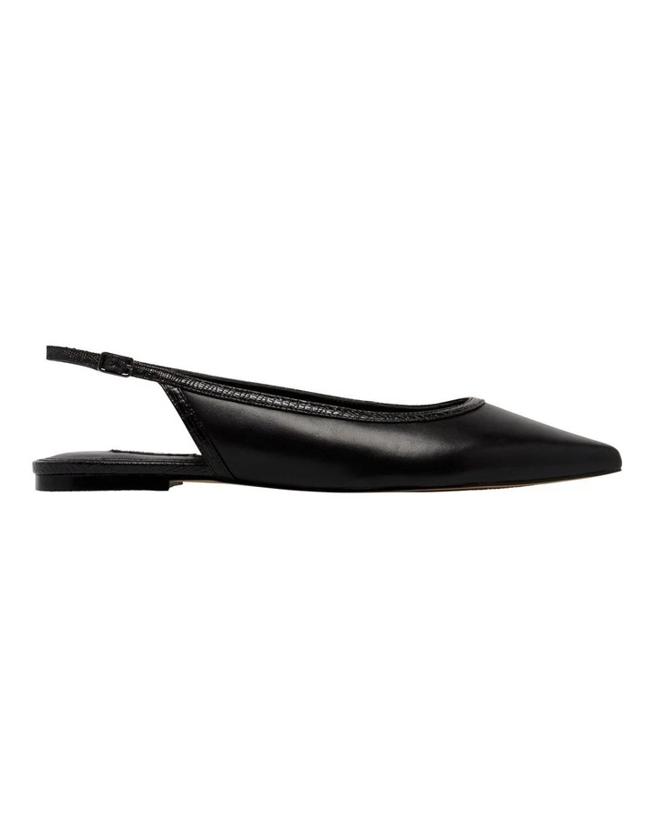 Stay on point in the Brin Flat. Featuring sleek and stylish minimalism design, this pointed toe, sling back ballet flat is chic and sophisticated seamlessly transitioning you from work to weekend. This classic staple is constructed by a comfortable and plush footbed and defined by it’s two-tone textured detailing.