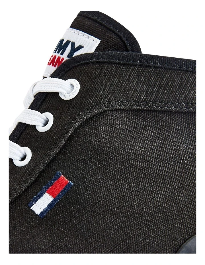 Highlights Recycled cotton and cotton upper Recycled cotton and cotton lining Polyurethane and natural rubber insock Natural rubber outsole Vulcanised Tommy Jeans branding Tommy Jeans flag embroidery on side
