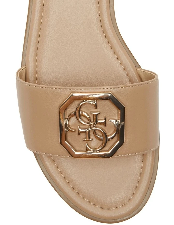 The perfect flat to slip into with a sun dress, palazzo pants or shorts, these Botali nude slides from Guess feature a raised logo and open toe