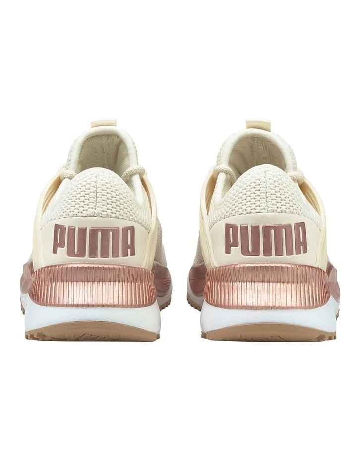 The Pacer Future Lux Wn s is a modern street running inspired sneaker. It features a comfortable bootie construction and a TPU cage that gives a great support for the foot, both on lateral and medial side. Together with and interesting midsole design and bold PUMA branding on the heel, this sneaker combines comfort and fashion for everyday usage. This women s specific style features a valuable knitted upper and metallic interest on the midsole. The SoftFoam+ sockliner provides superior cushioning.