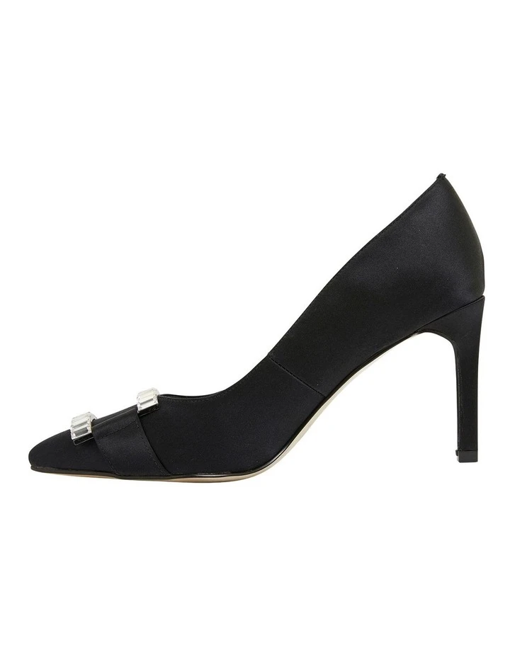 MADISON is the elevated take on a staple silhouette heel. Theyre meticulously crafted with a fabric upper thats embellished with jewels, an adjustable ankle strap, then shaped with a pointed toe and classic cone heel. Team this under event ready outfits to anchor a glamorous aesthetic.