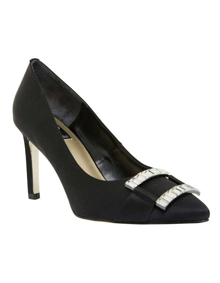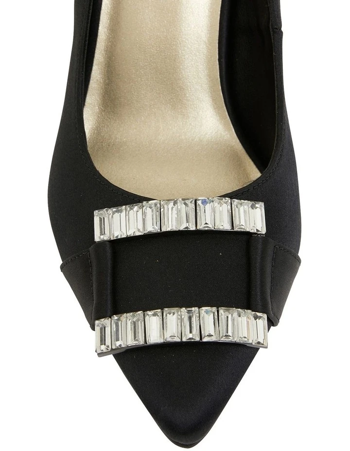 Glamorous sensibility is encapsulated with the RUBY heel. They’re crafted from a lustrous satin upper to a sharp point toe adorned with statement jewel detailing. Team this underneath dresses or tailored separates as an eye catching accessory.