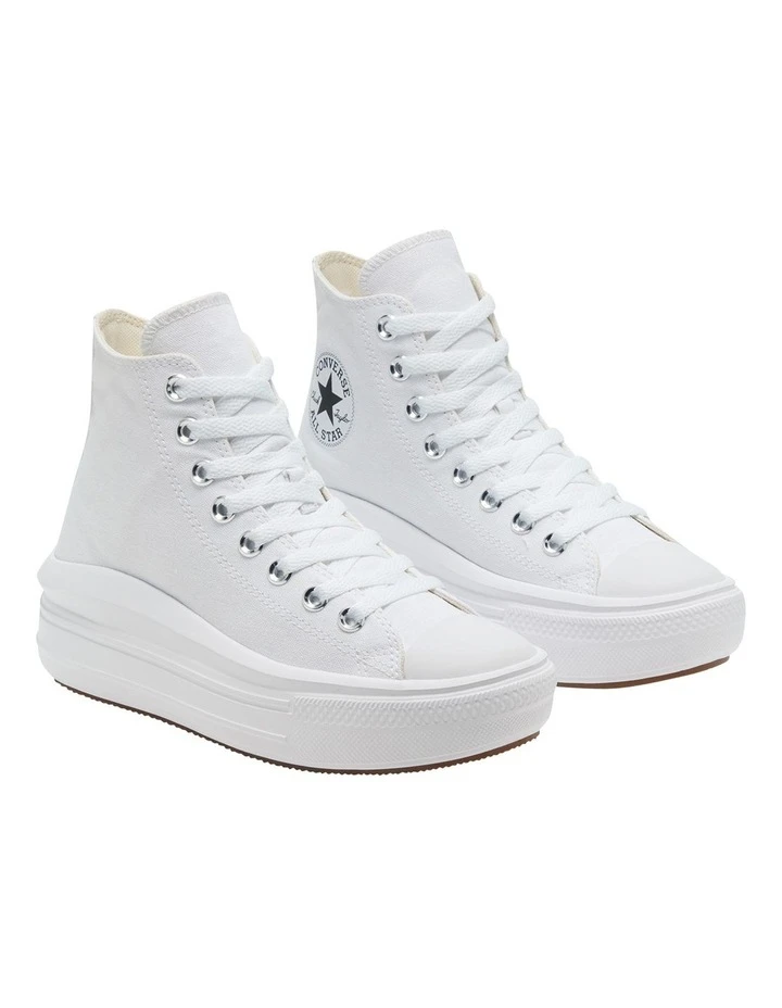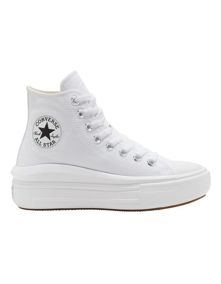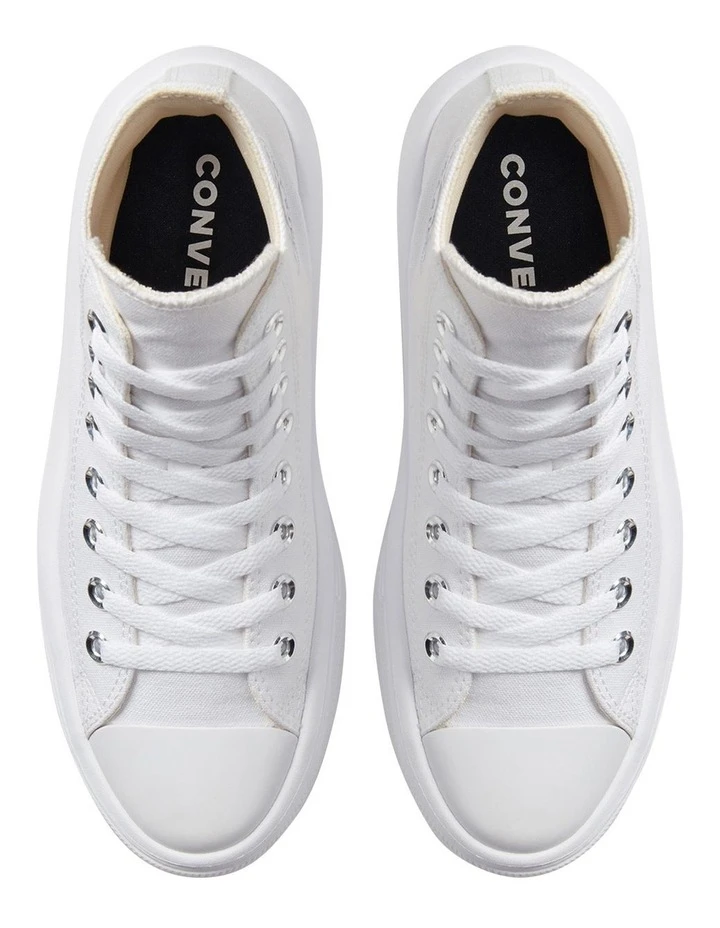 You already know our high-topthat canvas upper, the diamond pattern outsole, and iconic ankle patch. We streamlined this classic silhouette for her and dropped it into an ultra-lightweight EVA cupsole, giving you the Chuck Taylor Move. With extra comfort and height. There she goes.