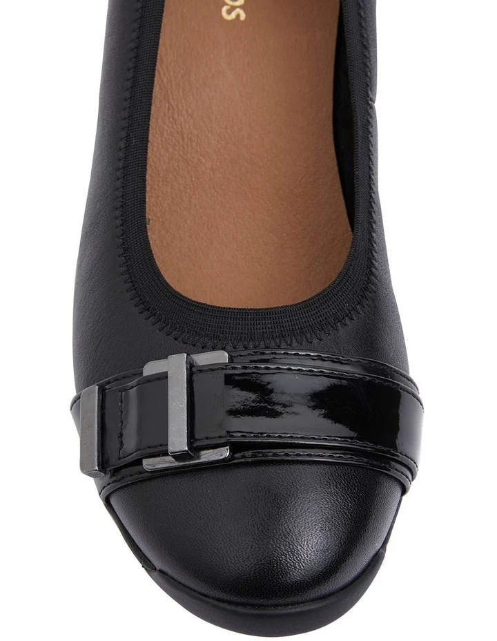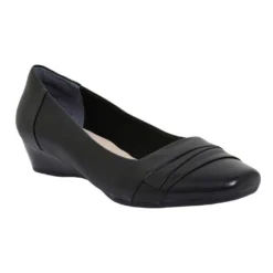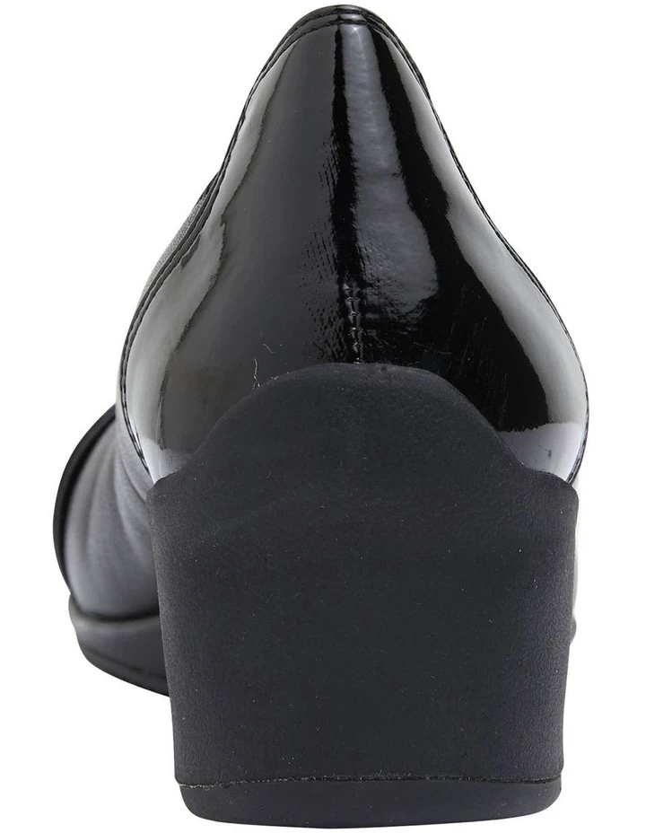 NARITA expresses the epitome of workwear convienience and comfort! Dressed with a thick wedge heel, a non-slip grip sole and elastic topline detailing for a custom fit, this style will become your statement 9-5 go to shoe! Approx. 4cm heel Leather upper Synthetic lining Synthetic sole Wide comfort fit (C+fit)