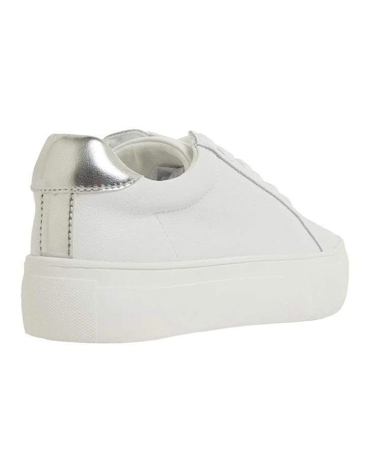 Tap into the elevated minimalism trend with FRENZY. The low top silhouette is crafted with a smooth leather upper, contrasted with a colourful heel tab, then fastened with a lace-up vamp and a thick, elevated sole. Wear them as a casual accompaniment to smart separates.