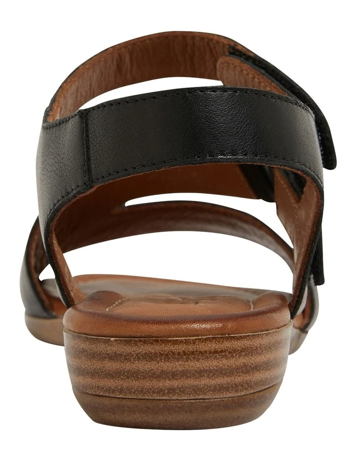 KENYA brings an elevated tone to the classic flat silhouette. They open toe style is crafted using a soft leather with a sweeping side design, fastening with two adjustable velcro straps then set on a comfortable mid heel height.