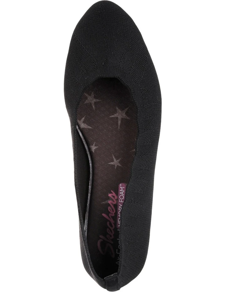 Cast an alluring spell of style and easy wearing comfort with the SKECHERS Cleo – Bewitch shoe. Soft woven stretch fabric with woven-in detail in a slip on casual dress ballet flat with collar trim and Air Cooled Memory Foam insole.