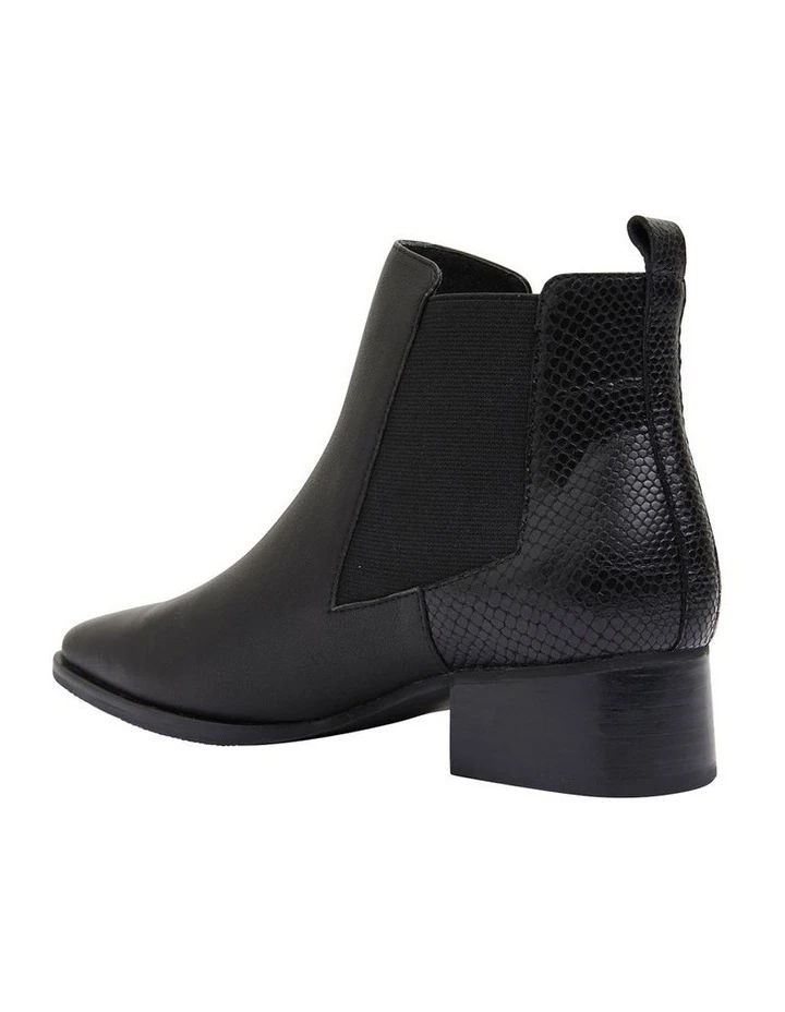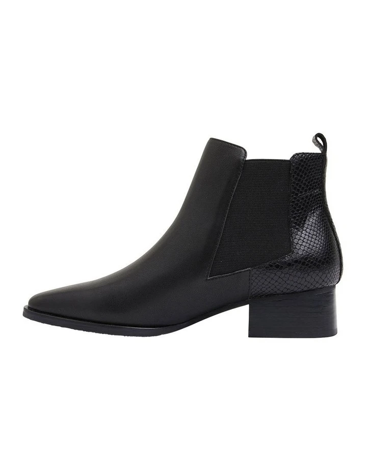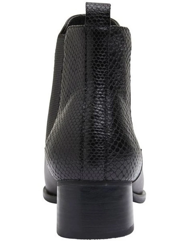 DECAN boats clean and sleek styling, with a perfect mixture of comfort and style. This ankle boot features scorched snake print detailing, elastic gussets and a pointed toe shape. Pair with opaque stockings for a corporate feel or tailored denim jeans for a weekend edit. Approx. 4cm heel height Leather upper Leather lining Synthetic sole