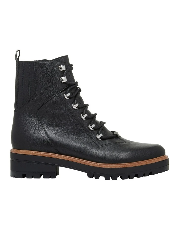 The Ivani Boot is made for walking, with a chunky sole, easy lace-up front and a side zip designed to effortlessly slip into the soft leather boot, Ivani ensures a comfortable yet stylish wear. This contemporary and chic Biker Boot is uber cool and timeless with an all over delicate stitching detail and elasticated back feature. Pair with a flowy knee length dress or with a skirt and sweater duo for a trendy twist to your classic style or opt for an off duty look by pairing with your jeans and leather biker jacket.